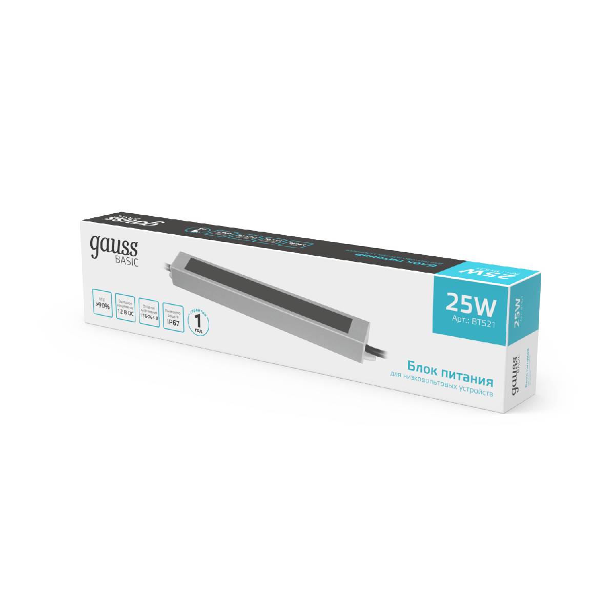 Блок питания Gauss Basic 25Вт DC12 IP67 BT521Характеристики