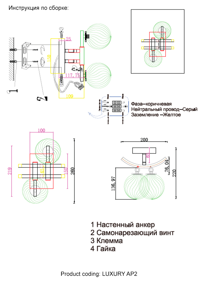 Бра Crystal Lux LUXURY AP2 CHROMEХарактеристики