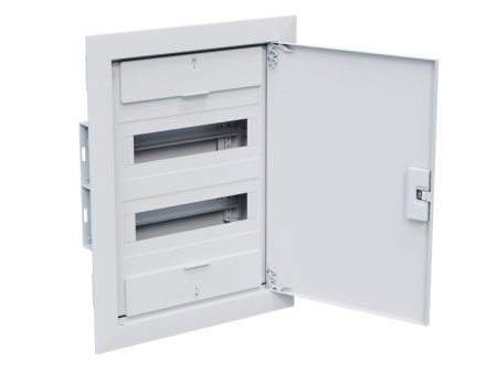 Встраиваемый корпус OptiBox Pro шириной 385 мм, высотой 500 мм, глубиной 100 мм, имеющий 12 модуля (модулей).Характеристики