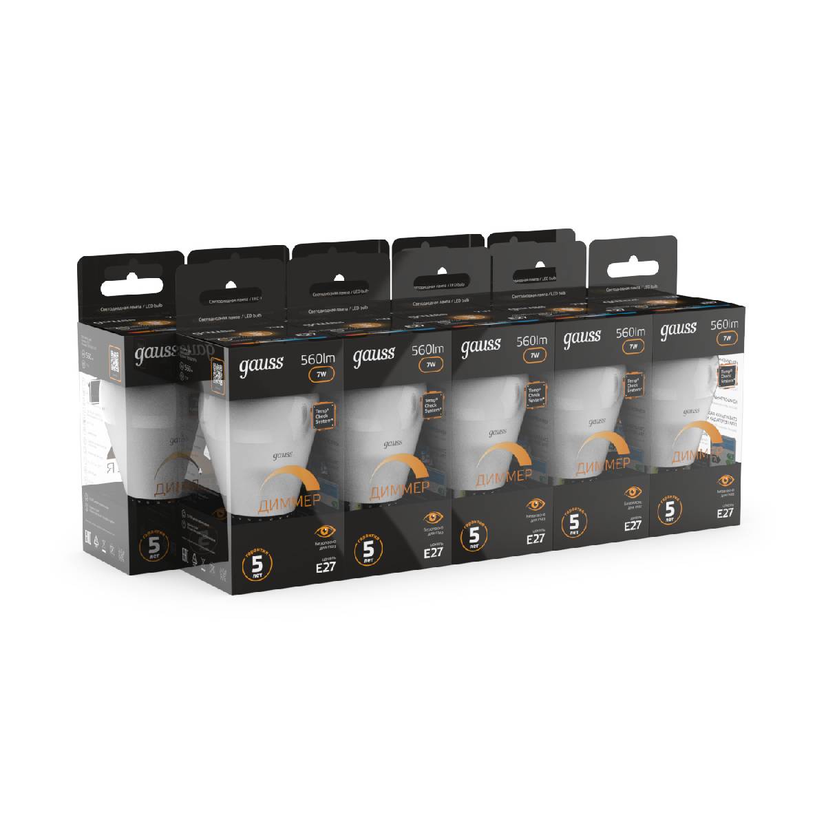 Лампа светодиодная диммируемая Gauss E27 7W 3000K матовая 105102107-DХарактеристики
