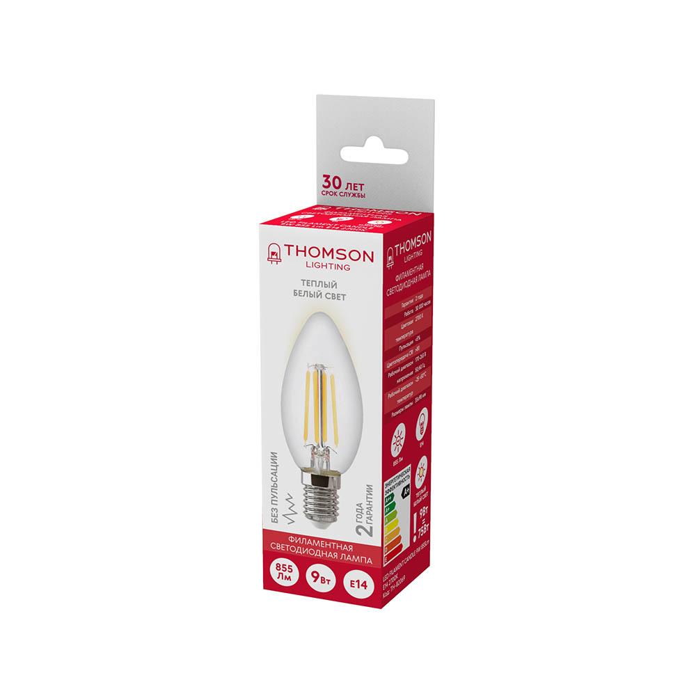 Лампа светодиодная филаментная Thomson E14 9W 2700K свеча прозрачная TH-B2069Характеристики