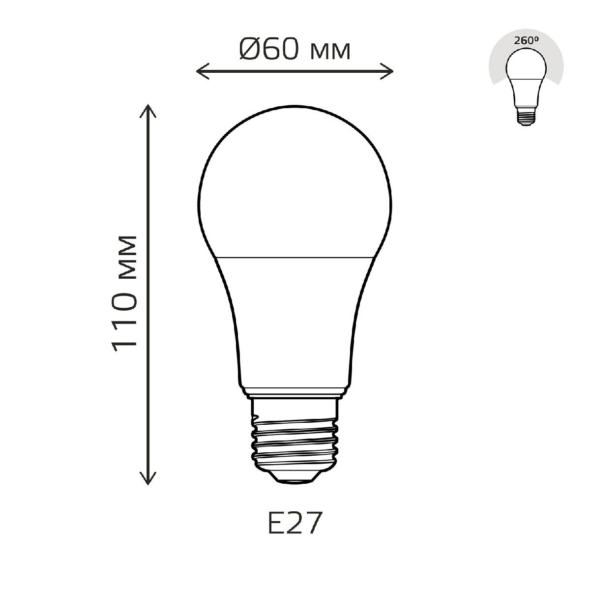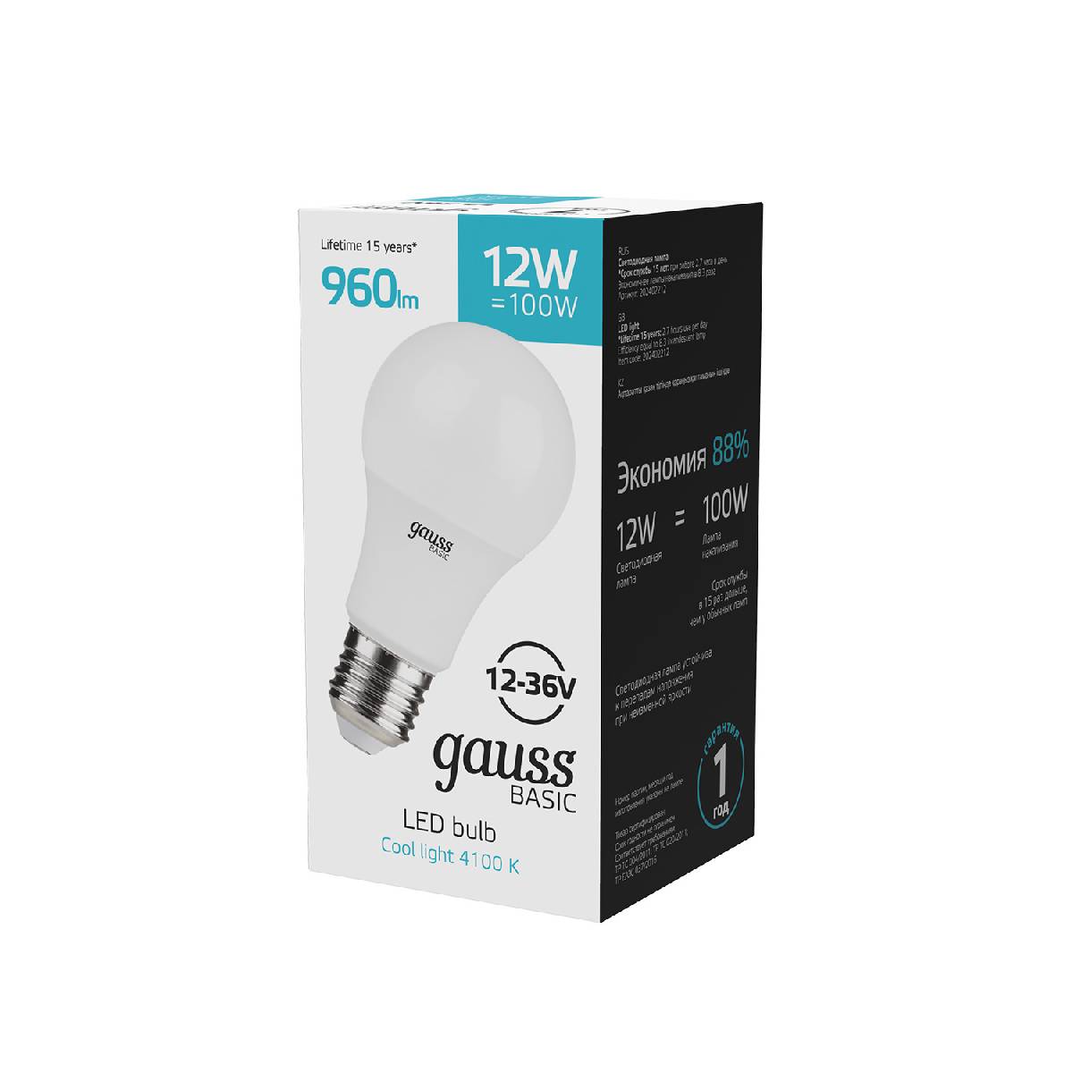 Лампа светодиодная Gauss Basic E27 12W 4100K 202402212Характеристики