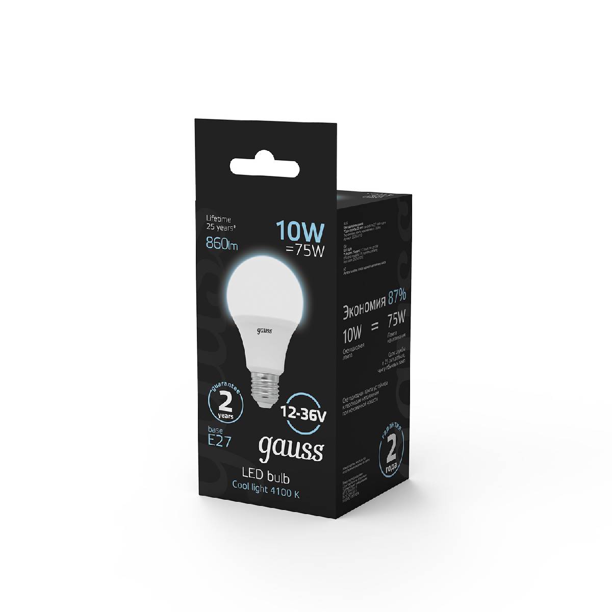 Лампа светодиодная Gauss E27 10W 4100K матовая 202502210Характеристики