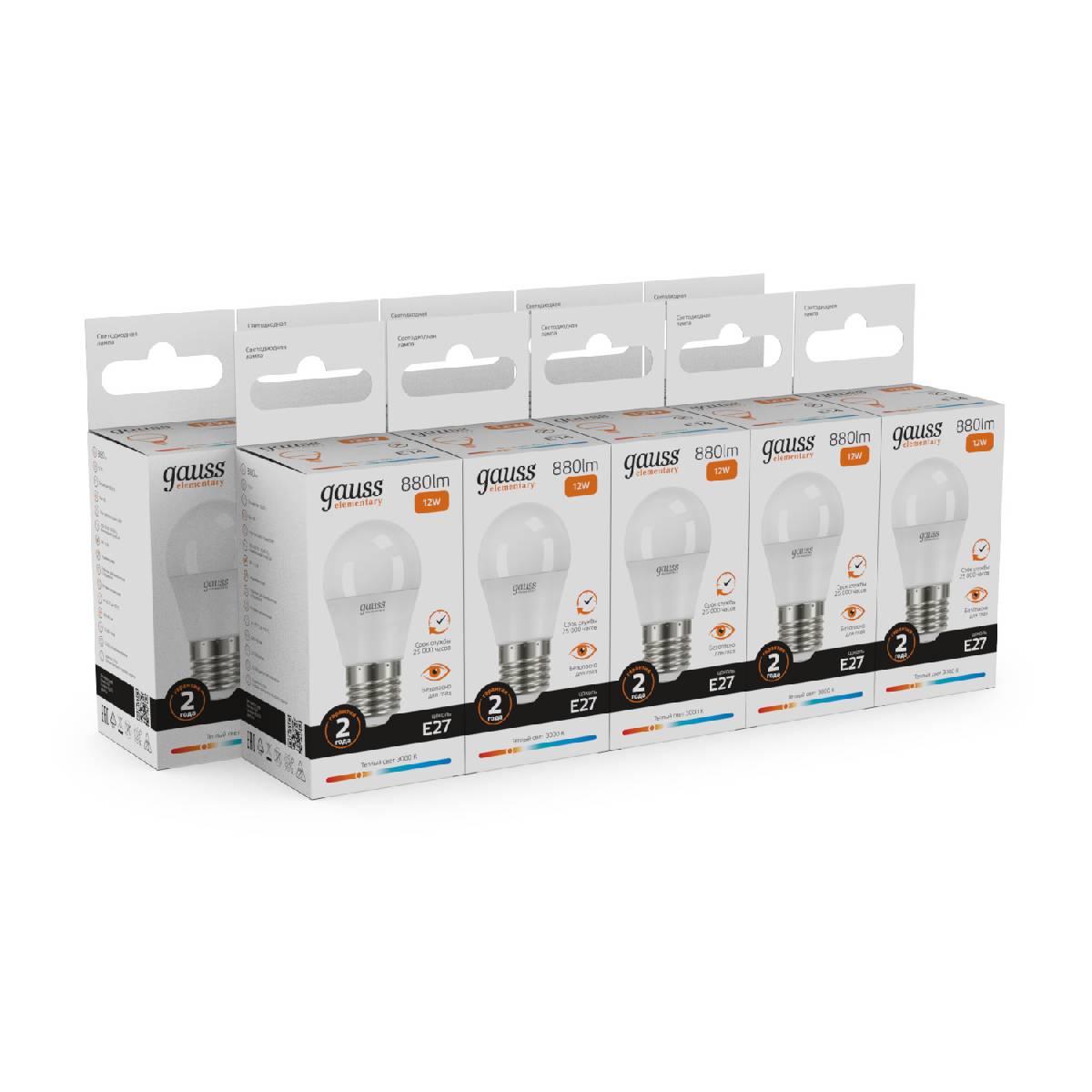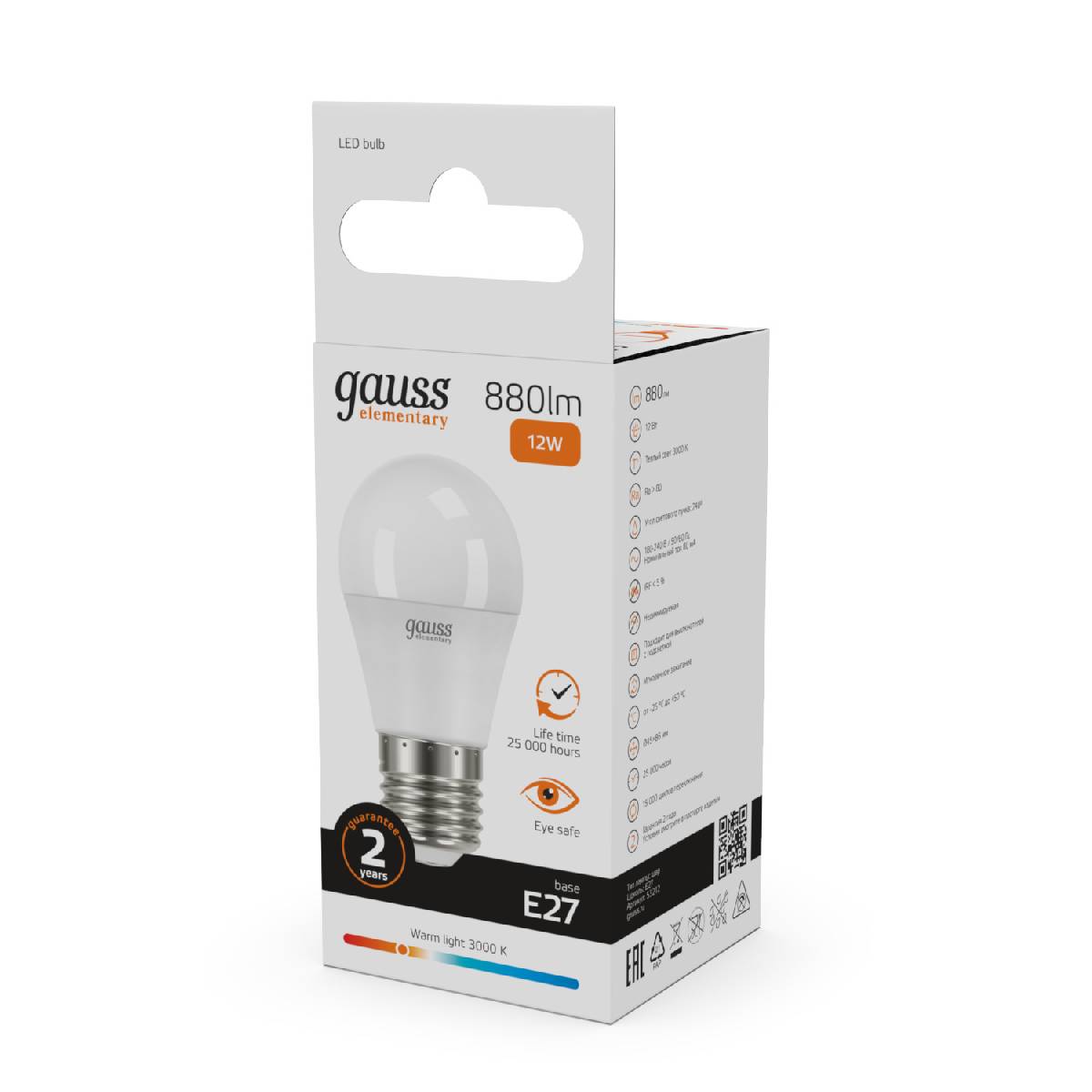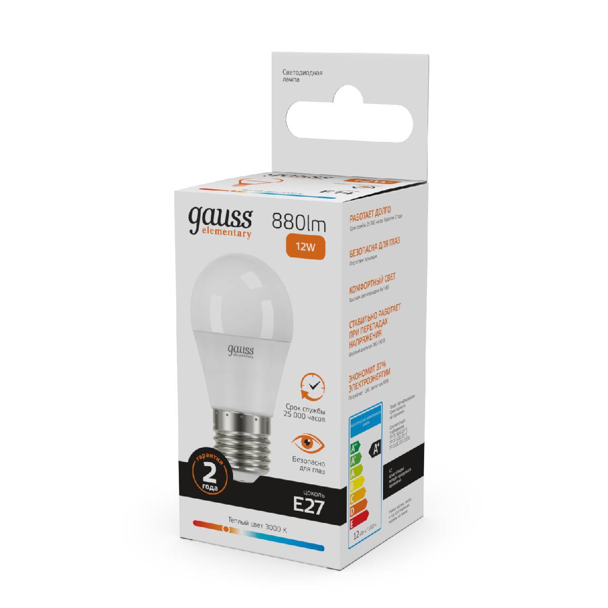 Лампа светодиодная Gauss E27 12W 3000K шар матовый 53212Характеристики