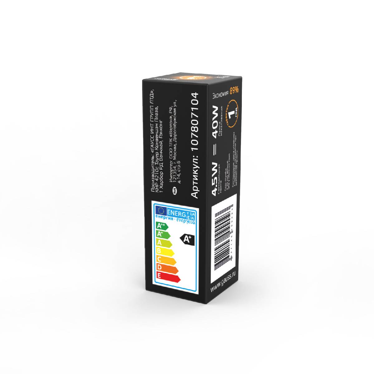 Лампа светодиодная Gauss G4 4.5W 3000K прозрачная 107807104Характеристики