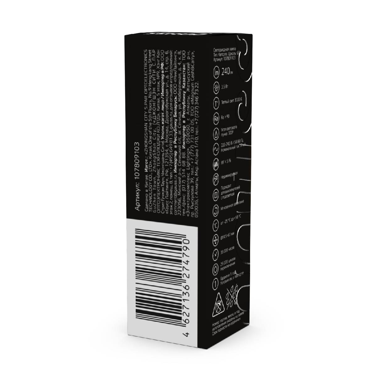 Лампа светодиодная Gauss G9 3.5W 3000K прозрачная 107809103Характеристики