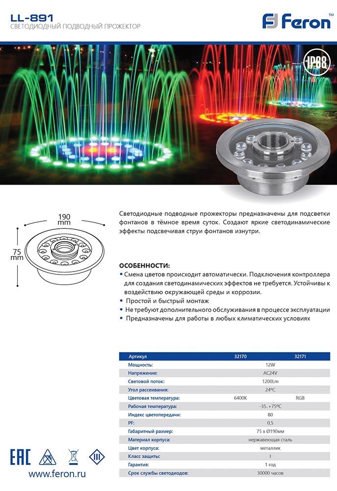Ландшафтный светодиодный светильник Feron LL-891 32171Характеристики