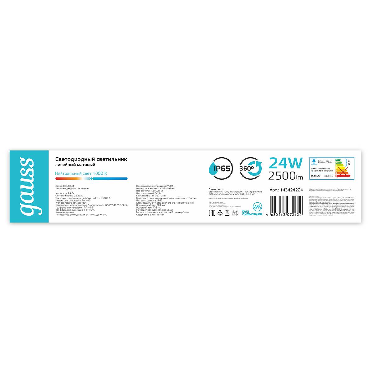 Линейный потолочный светильник Gauss Compact 143424224Характеристики