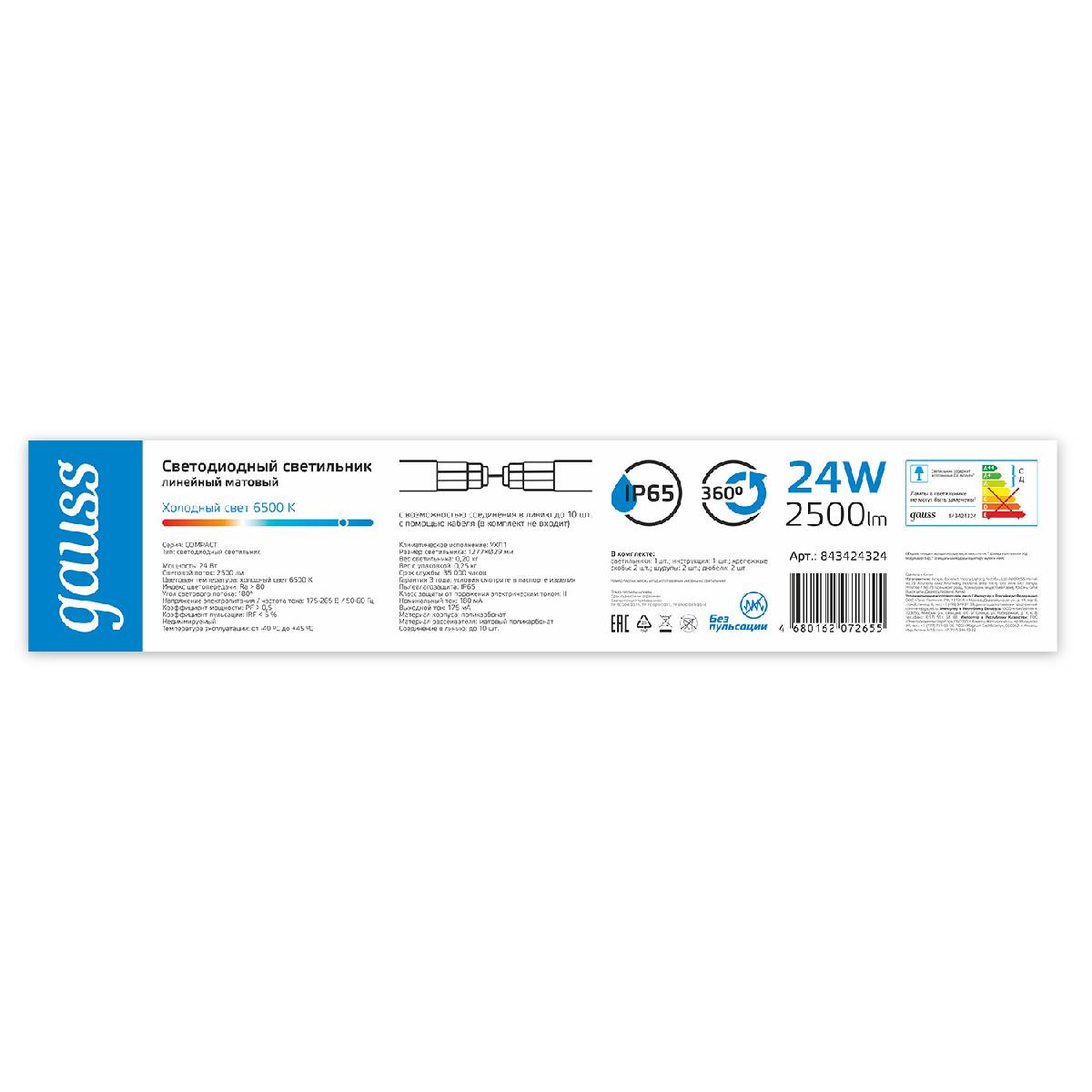 Линейный потолочный светильник Gauss Compact 843424324Характеристики