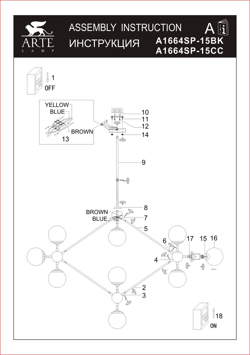 Люстра на штанге Arte Lamp Bolla A1664SP-15BKХарактеристики