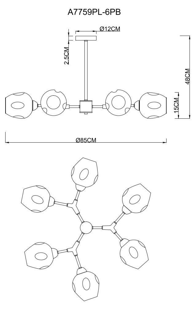 Люстра на штанге Arte Lamp Yuka Smoky A7759PL-6PBХарактеристики