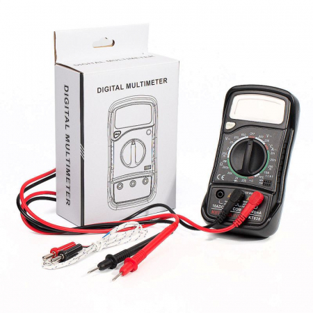 • В комплекте: мультиметр, измерительные щупы, термопара, батарейка, инструкция