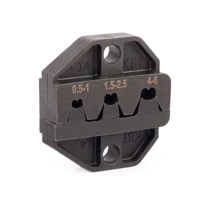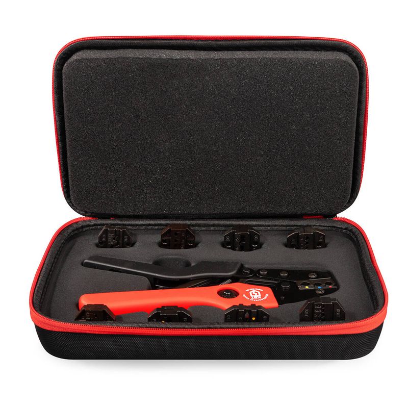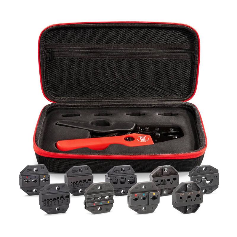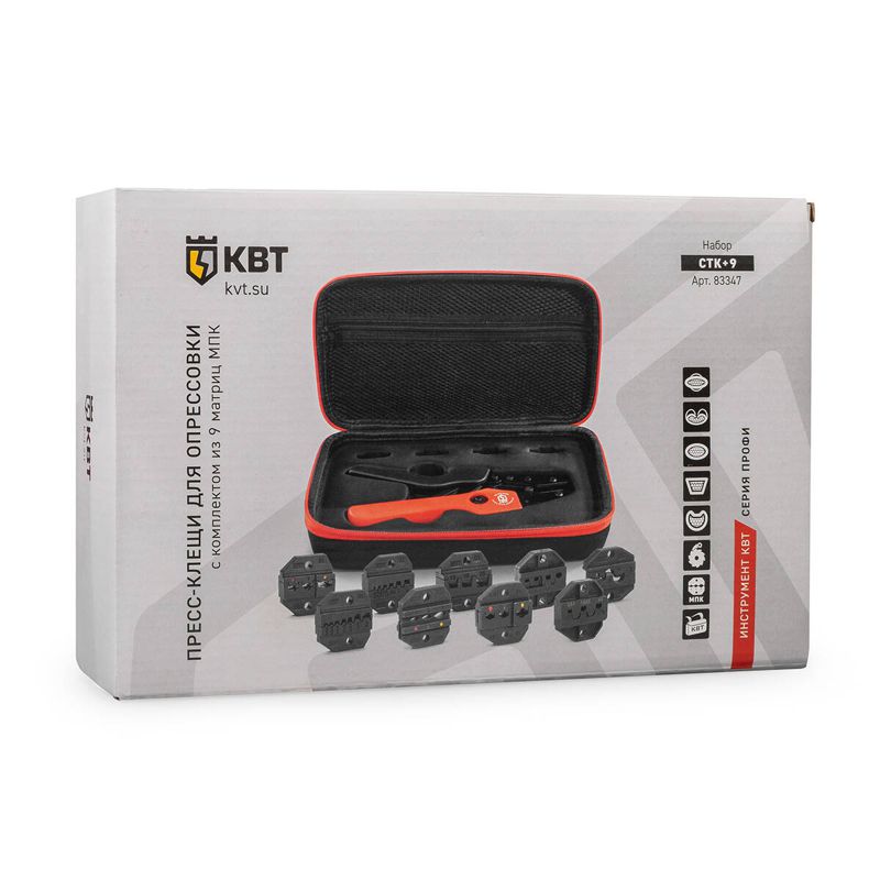 • В комплекте: • пресс-клещи СТК • матрица МПК-01 для изолированных наконечников • матрица МПК-02 для втулочных наконечников • матрица МПК-03 для втулочных наконечников • матрица МПК-04 для неизолированных разъемов (автоклемм) • матрица МПК-05 для неизолированных наконечников • матрица МПК-06 для двойных втулочных наконечников • матрица МПК-10 для изолированных наконечников • матрица МПК-11 для изолированных разъемов • сумка для инструмента с отделениями под матрицы • Сумка имеет 4 кармана с возможностью размещения 8 матриц, по 2 комплекта в каждом кармане • Совместимость: все матрицы серии МПК (КВТ) • Усиленная конструкция 9-дюймовых пресс-клещей • Храповой механизм, обеспечивающий блокировку обратного хода до завершения полного цикла опрессовки • Устройство разблокировки храпового механизма • Регулятор прижимного усилия матриц • Удобные эргономичные рукоятки • Прочная сумка с двумя карманами на лицевой стороне, кистевым ремнем и лямкой для крепления на пояс • Материал сумки: полиэстер 1680D ОксфордХарактеристики