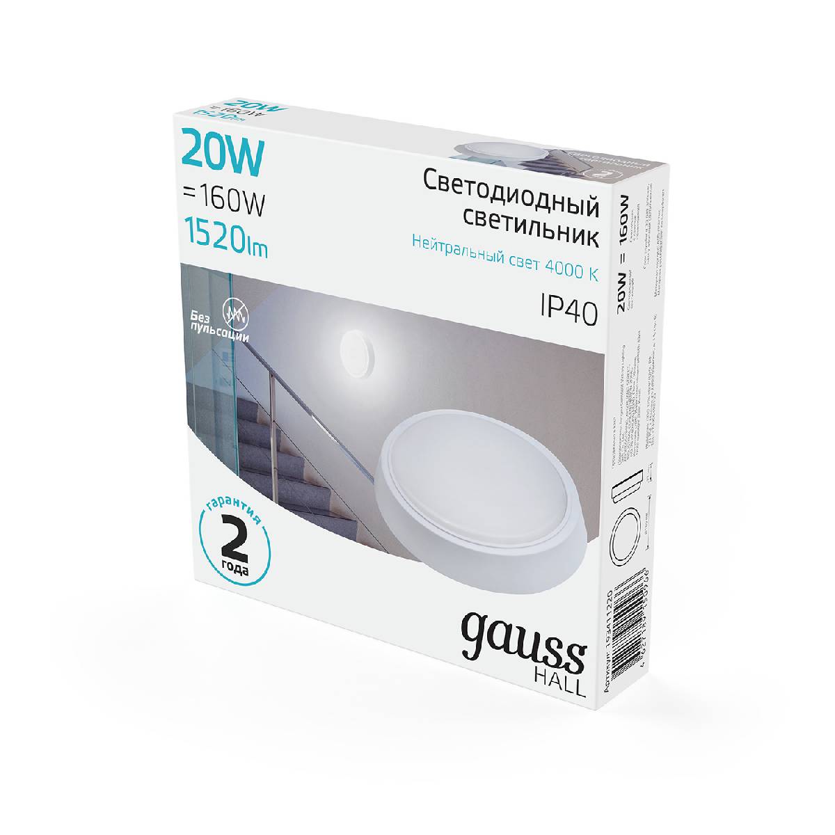 Настенно-потолочный светодиодный светильник Gauss Hall 193411220Характеристики