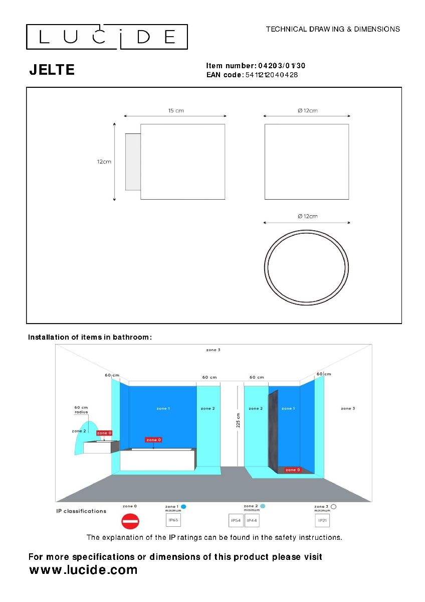 Настенный светильник Lucide Jelte 04203/01/30Характеристики