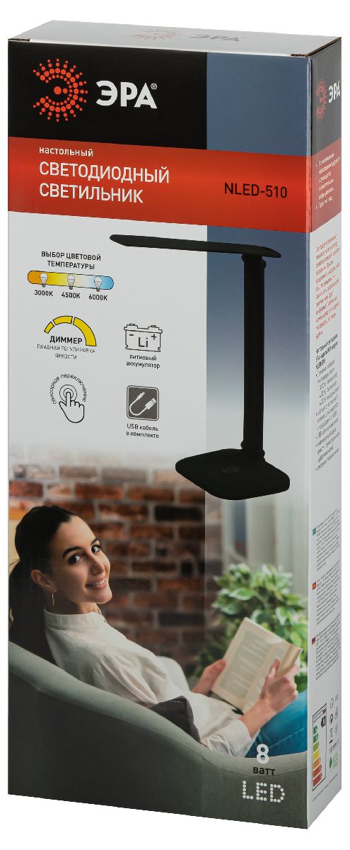 Настольная лампа Эра NLED-510-8W-BK Б0057203Характеристики