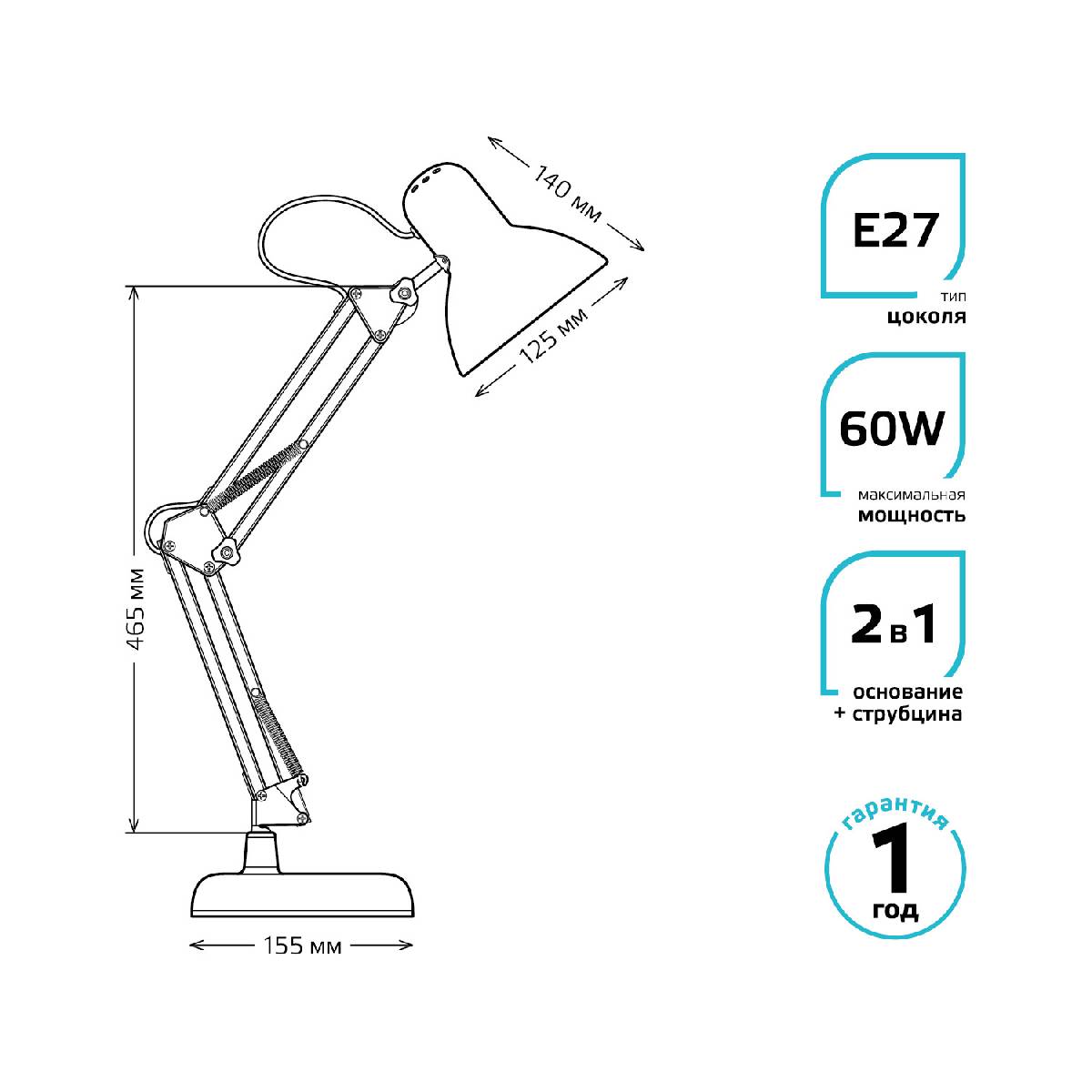 Настольная лампа Gauss GT0024Характеристики