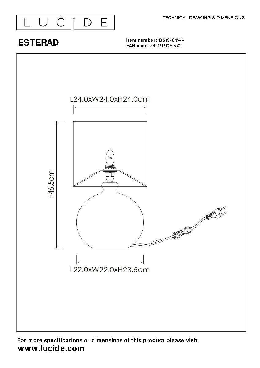 Настольная лампа Lucide Esterad 10519/81/44Характеристики