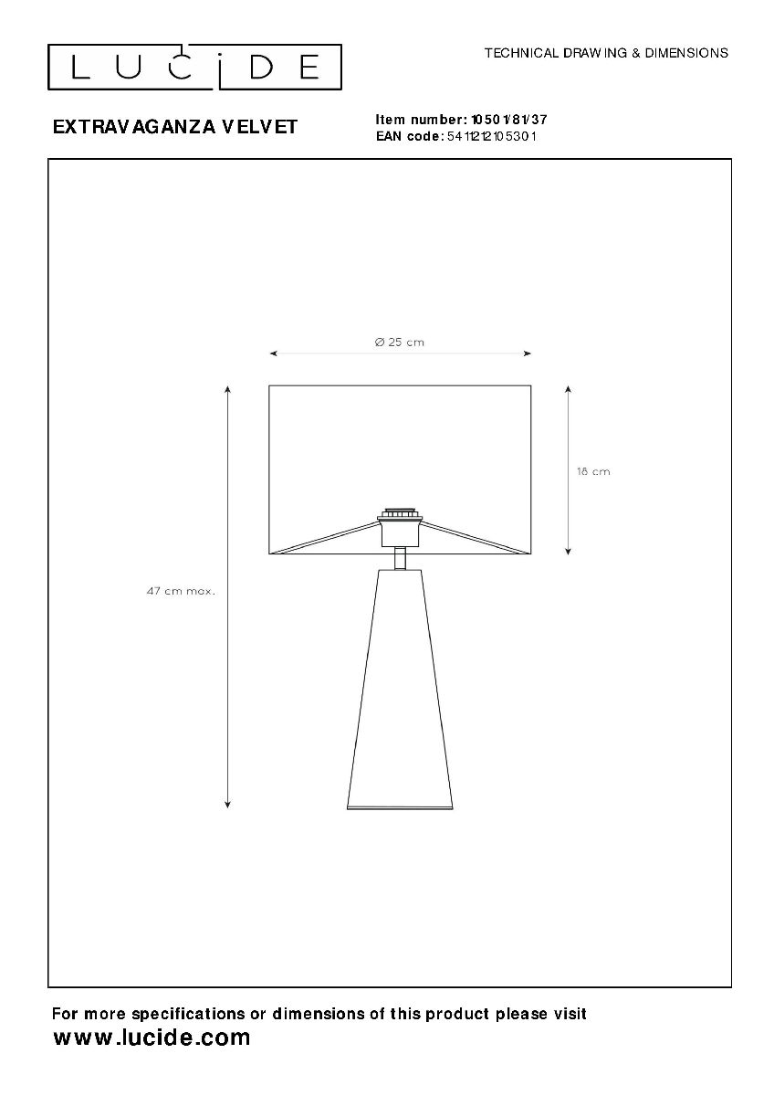 Настольная лампа Lucide Extravaganza Velvet 10501/81/37Характеристики