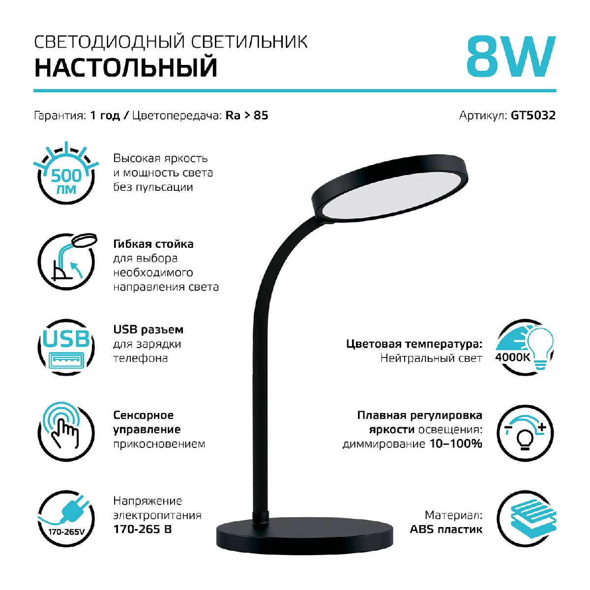 Настольная светодиодная лампа Gauss GT5032Характеристики