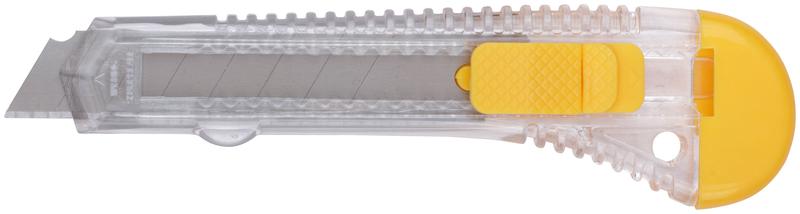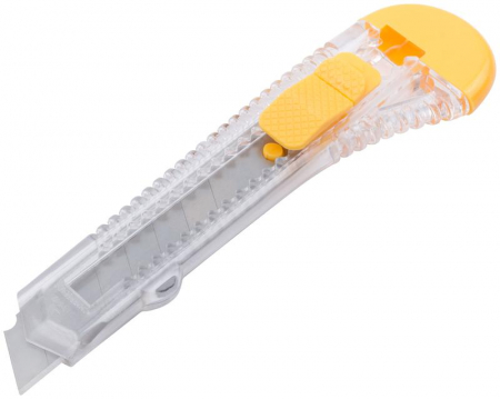 Применяется для резки бумаги, обоев,скотча, картона средней твердости. Лезвие выполнено из износостойкого металла,гарантируется устойчивость во время работы. Рифленая форма ножа обеспечивает крепкий захват и предотвращает выскальзывание при использовании. Компактный корпус изготовлен из пластика, удобен в использовании и занимает минимальное место.Характеристики