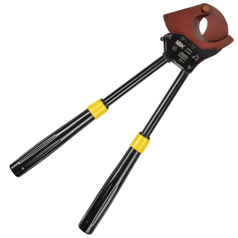 Ножницы секторные НС-52ВЛ IEK для резки стального троса диаметром до 18мм, провода АС и АСК максимальным диаметром до 52 мм. Подходит для: провода АС, АСК, СИП-3 диаметром до 52 мм (1440мм2); стальных канатов 1х7 диаметром до 12 мм; 1х19, 1х37 диаметром до 16 мм; кабелей с проволочной броней диаметром до 16 мм; прутков из низкоуглеродистой стали диаметром до 16 мм; труба из нержавеющей стали диаметром до 48мм.Характеристики