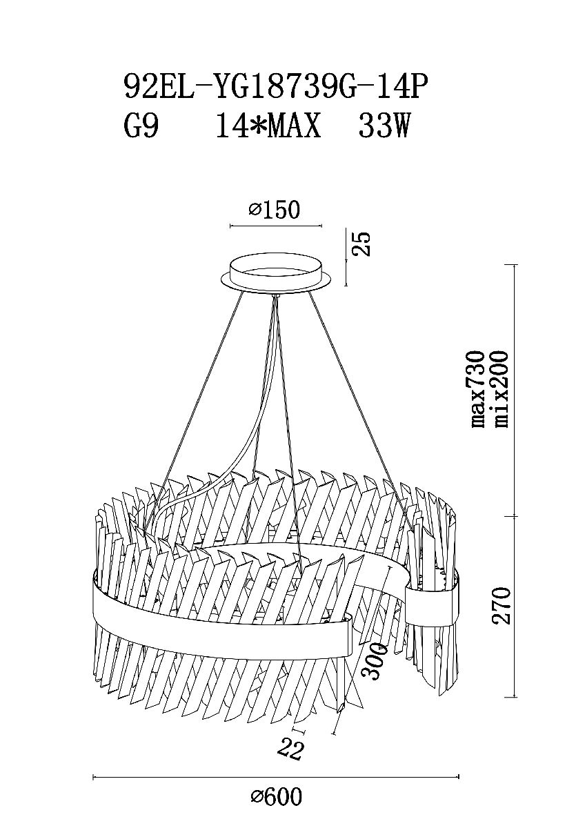 Подвесная люстра Garda Decor 92EL-YG18739G-14PХарактеристики