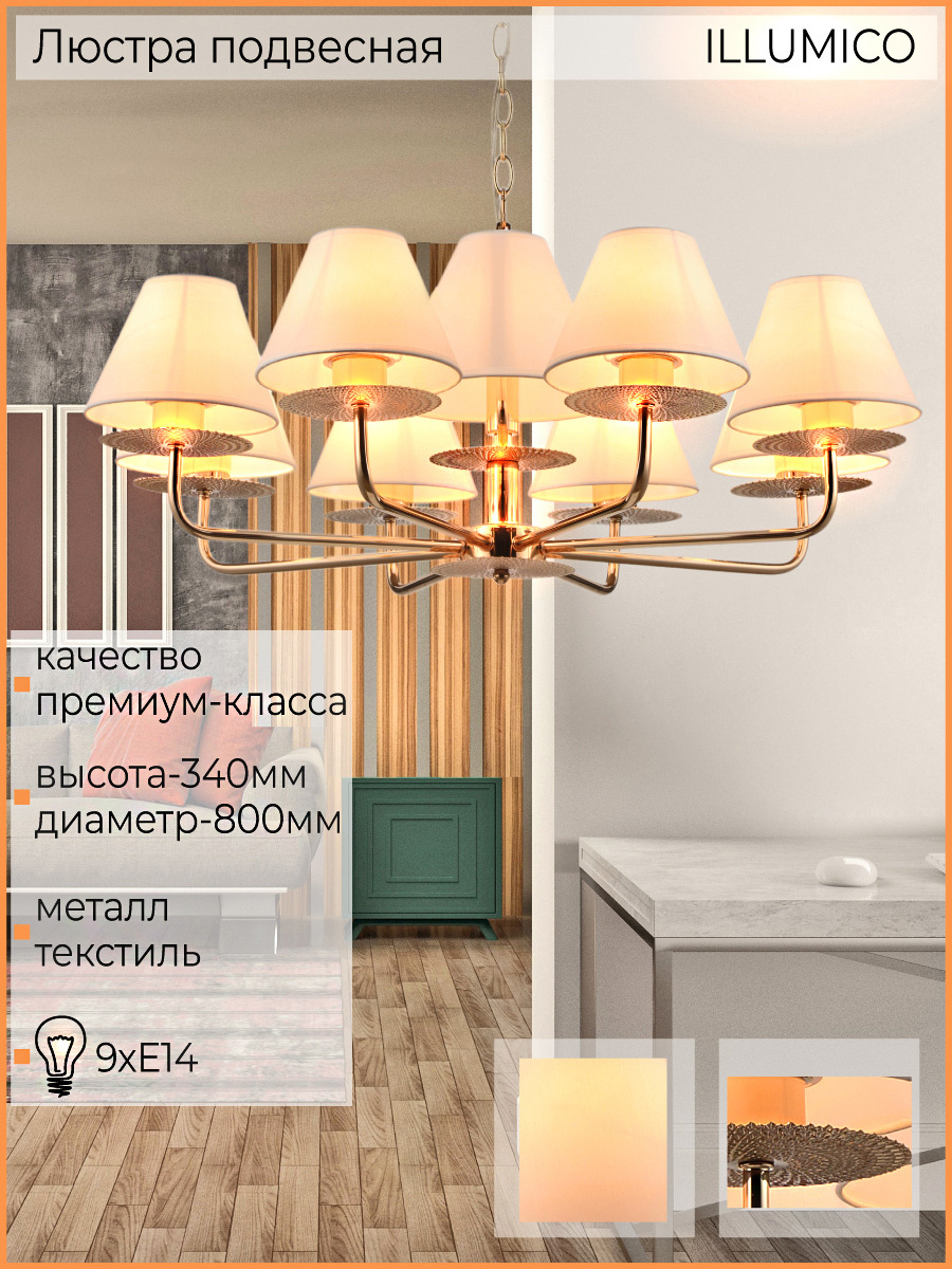 Подвесная люстра Illumico IL6197-9P-17 GDХарактеристики