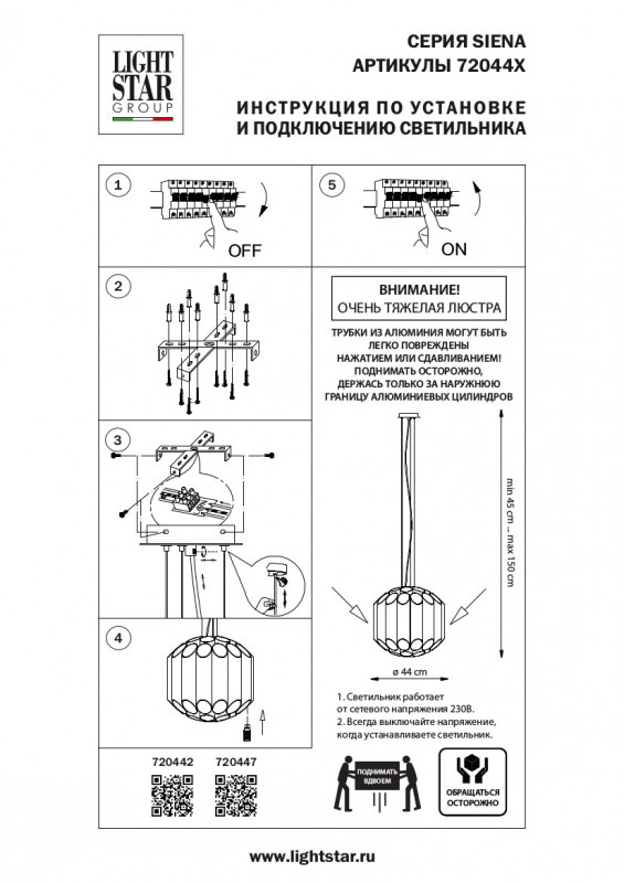 Подвесная люстра Lightstar Siena 720447Характеристики