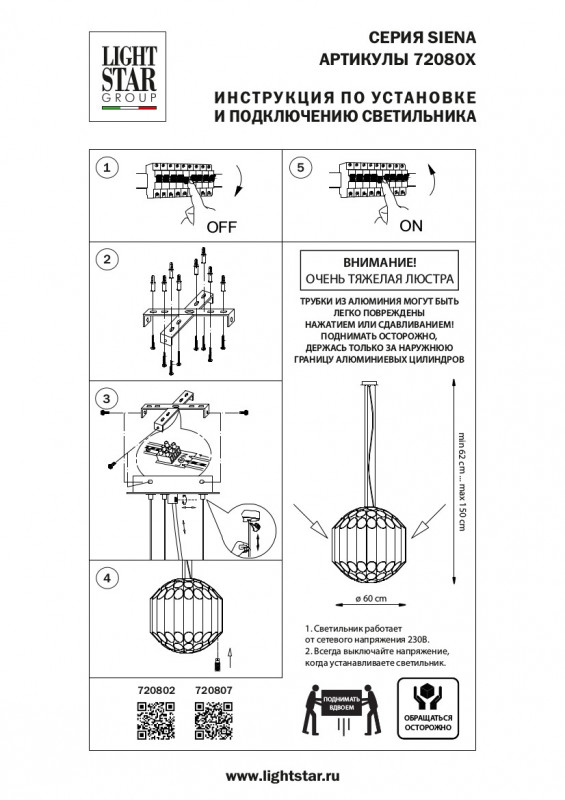 Подвесная люстра Lightstar Siena 720807Характеристики
