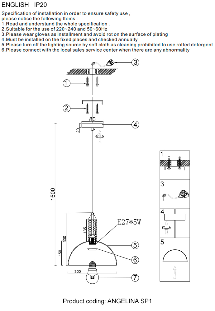 Подвесной светильник Crystal Lux ANGELINA SP1 NICKELХарактеристики