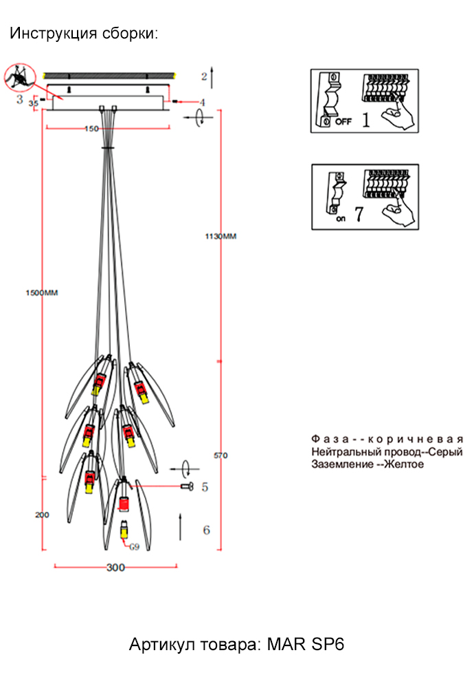 Подвесной светильник Crystal Lux MAR SP6 TRANSPARENTEХарактеристики