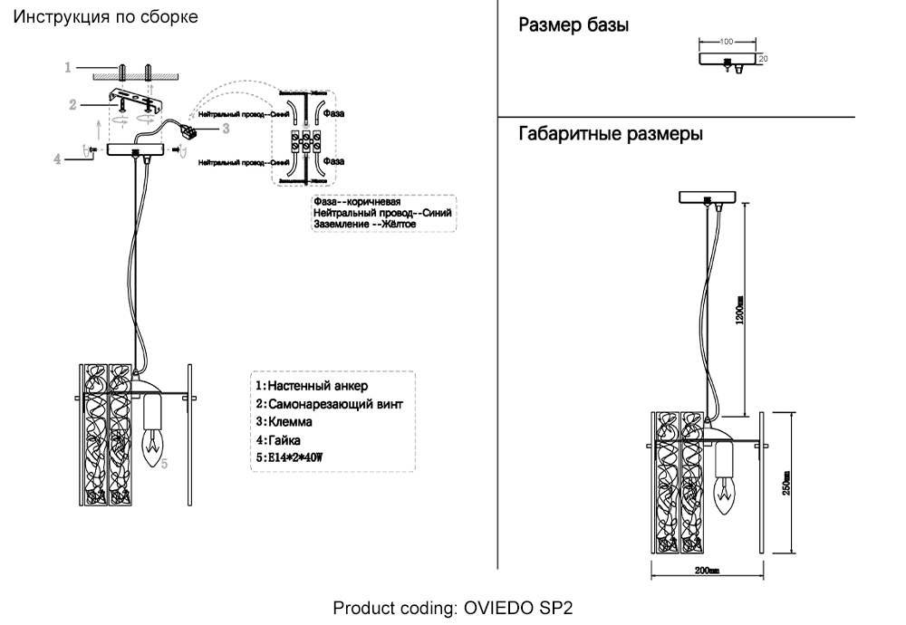 Подвесной светильник Crystal Lux OVIEDO SP2Характеристики