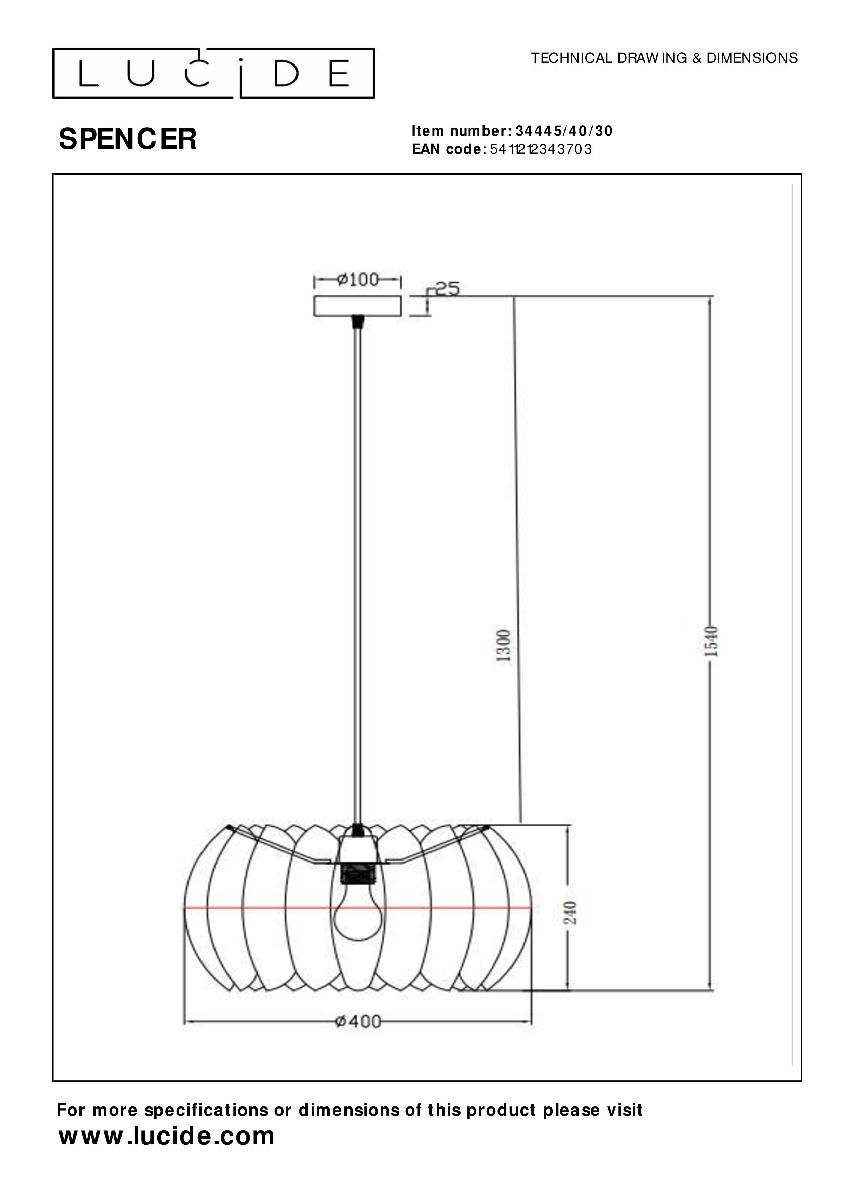 Подвесной светильник Lucide Spencer 34445/40/30Характеристики