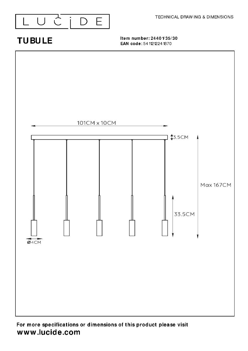 Подвесной светильник Lucide Tubule 24401/35/30Характеристики