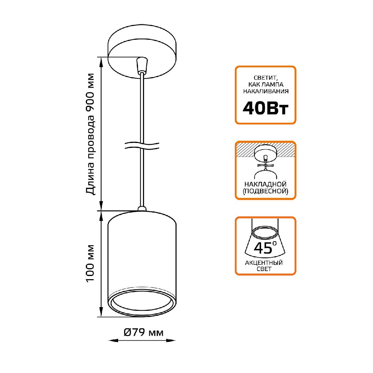 Подвесной светодиодный светильник Gauss HD038Характеристики