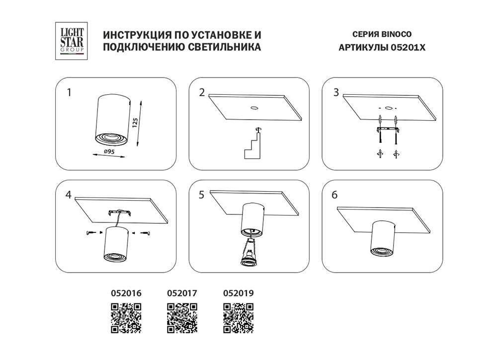 Потолочный светильник Lightstar Binoco 052017Характеристики