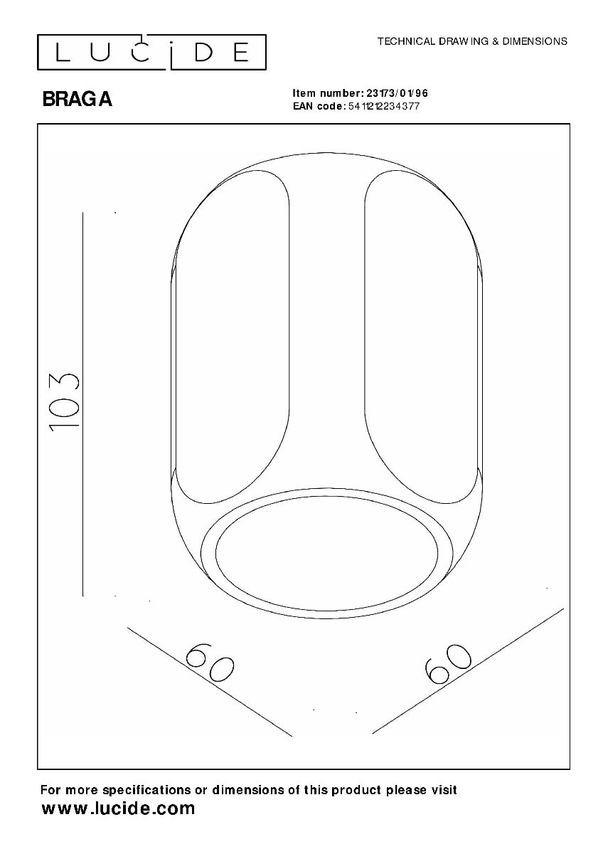 Потолочный светильник Lucide Braga 23173/01/96Характеристики