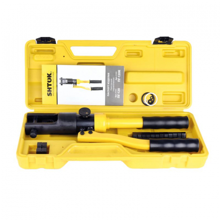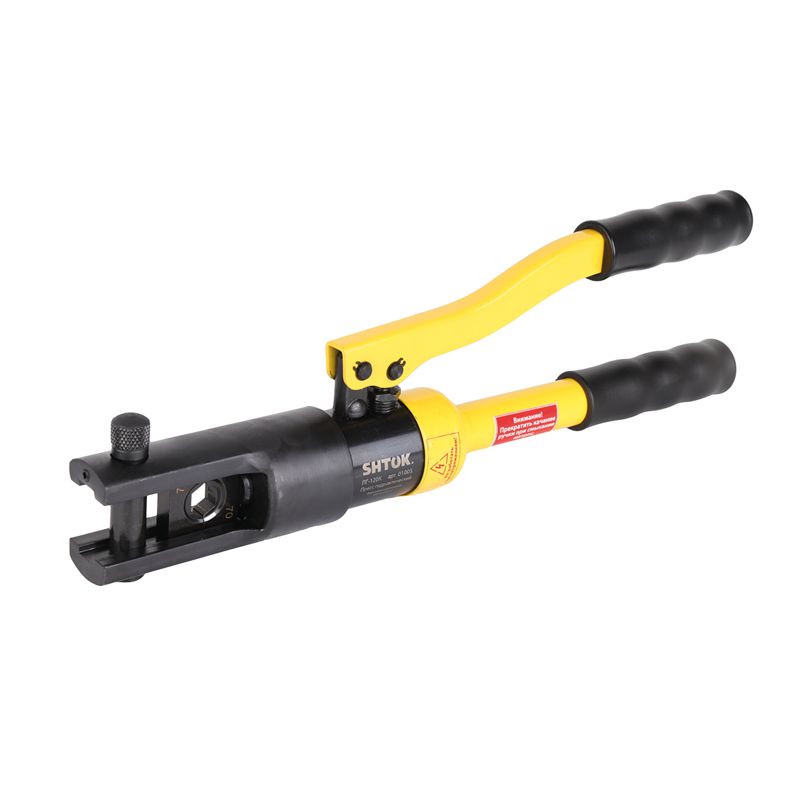 Ручной гидравлический пресс SHTOK ПГ-120К 01005 Пресс гидравлический ПГ-120К предназначен для опрессовки медных и алюминиевых наконечников сечением от 10 до 120 мм2.Оборудован автоматическим клапаном ограничения давления.