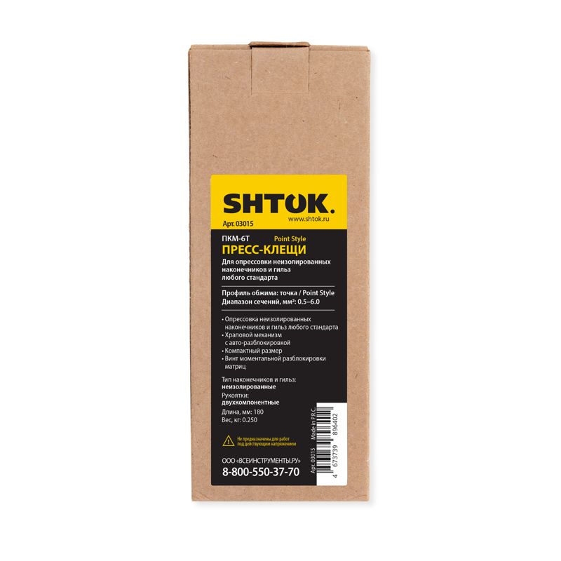 Пресс-клещи ПКМ-6Т предназначены для опрессовки неизолированных наконечников и гильз любого стандартаТип наконечников и гильз: неизолированные