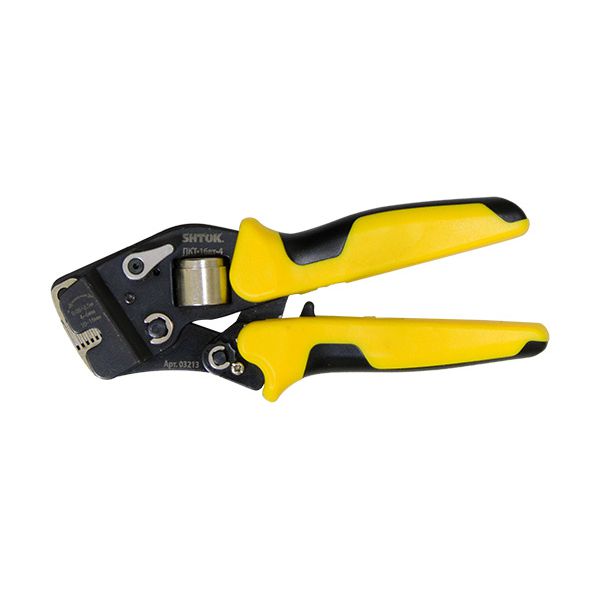 Торцевые пресс-клещи для опрессовки втулочных наконечников 0.08-16 мм2 SHTOK ПКТ-16вт-4 03213 оснащаются храповым механизмом, который автоматически разблокируется по завершении цикла. Модель изготавливается из холоднокатанной стали, что гарантирует высокую прочность и долговечность. Благодаря плотному смыканию матриц соединение отличается превосходным качеством. Конструкция изделия позволяет с комфортом работать даже в местах с ограниченным доступом.Характеристики
