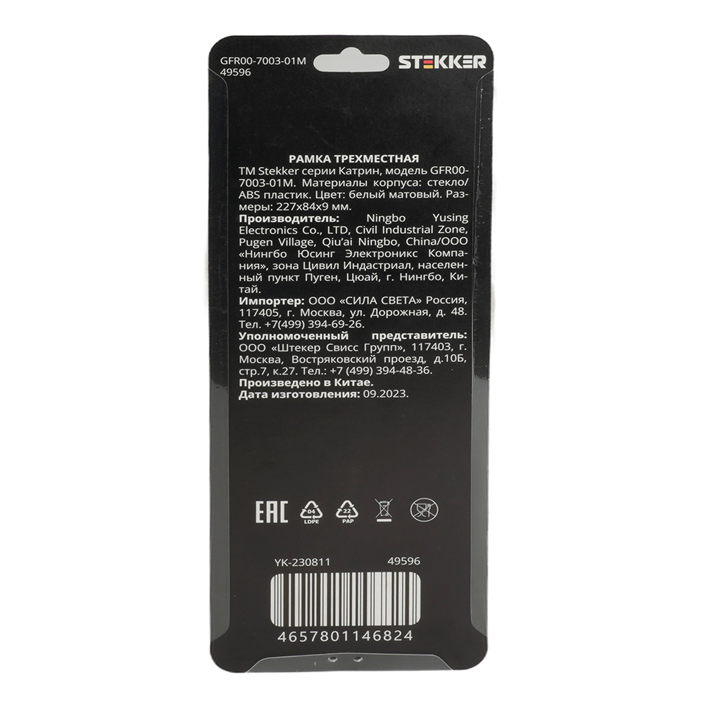 Рамка трехместная Stekker GFR00-7003-01M Катрин 49596Характеристики