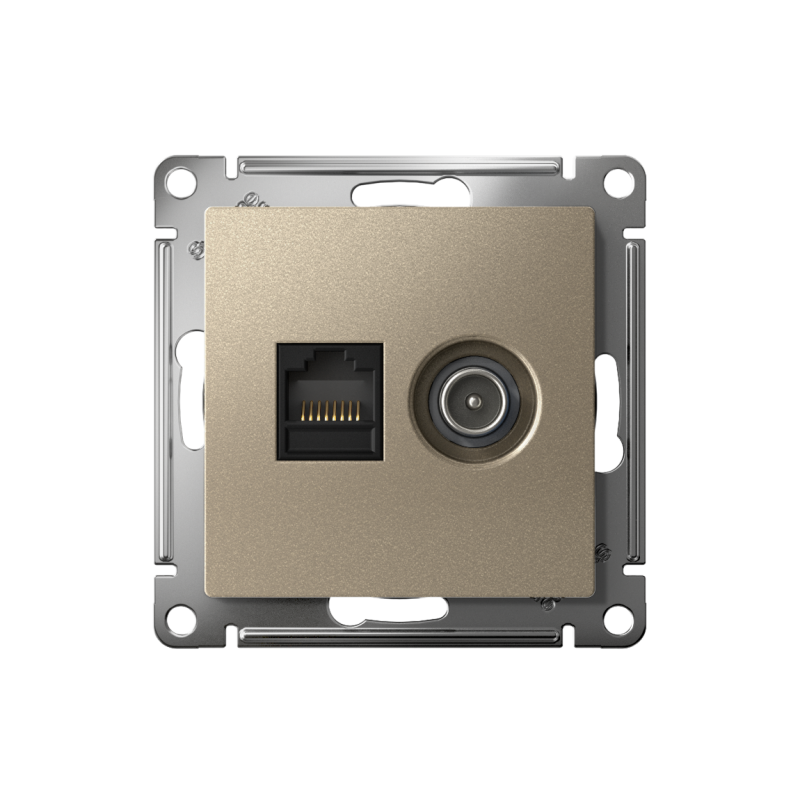 Механизм Systeme Electric (ранее Schneider Electric) серии AtlasDesign в цвете шампань двойной розетки разъёмами RJ45 категории 5е и TV предназначен для удобного и быстрого подключения вашего компьютера и телевизора к соответствующим сетям. Лицевые детали из качественного ABS-пластика, устойчивого к царапинам и УФ-излучению. Усиленные прямые монтажные лапки для лучшей фиксации механизма в монтажной коробке.Для покупки товара в нашем интернет-магазине выберите понравившийся товар и добавьте его в корзину. Далее перейдите в Корзину и нажмите на «Оформить заказ» или «Быстрый заказ».