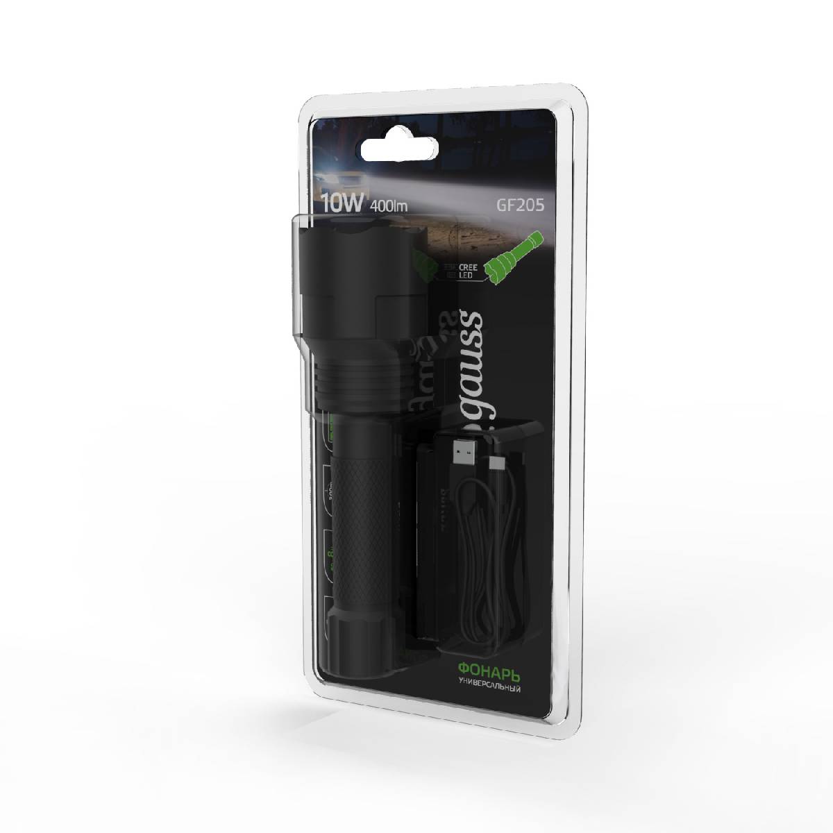 Ручной светодиодный фонарь Gauss аккумуляторный 147х44 400 лм GF205Характеристики