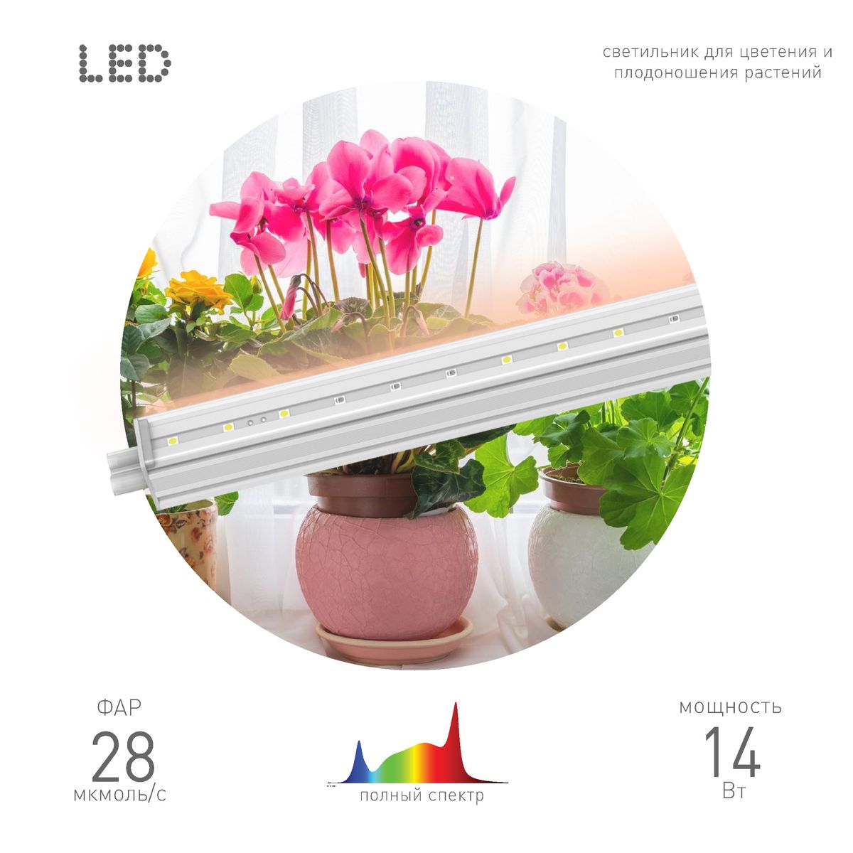 Светильник для растений ЭРА FITO-14W-T5-Ra90 Б0049312Характеристики
