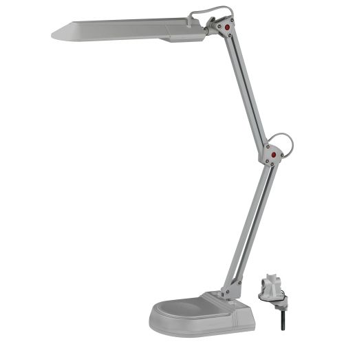 Светильник предназначен для использования с энергосберегающей лампой, которая обеспечивает экономию электроэнергии до 70%. Лампа входит к комплект. Выключатель на основании плафона. Два варианта крепления в комплекте: основание, струбцина.Высота плафона регулируется двухсекционной сгибающейся стойкой, направление света регулируется поворотом плафона в любом направлении под любым углом.