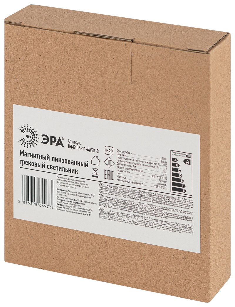 Трековый магнитный светильник Эра TRM20-4-11-6W3K-B Б0054814Характеристики
