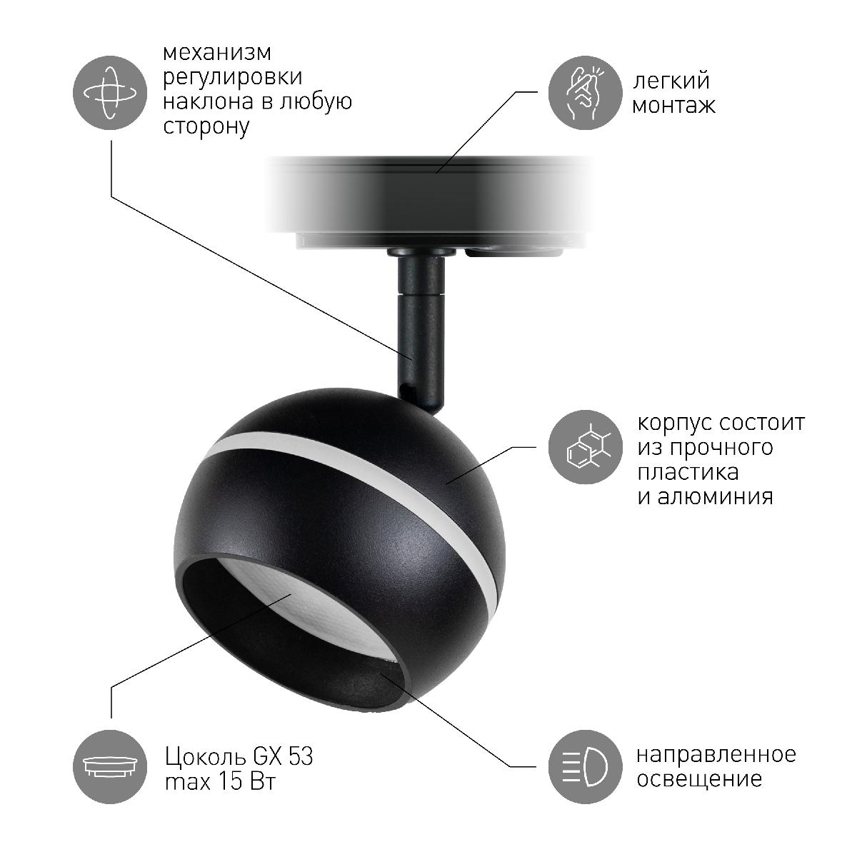 Трековый светильник Эра TR47 - GX53 BK Б0054156Характеристики