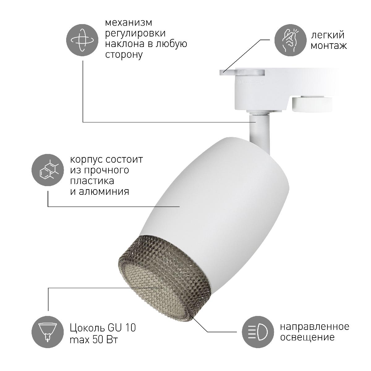 Трековый светильник Эра TR51 - GU10 WH Б0054163Характеристики