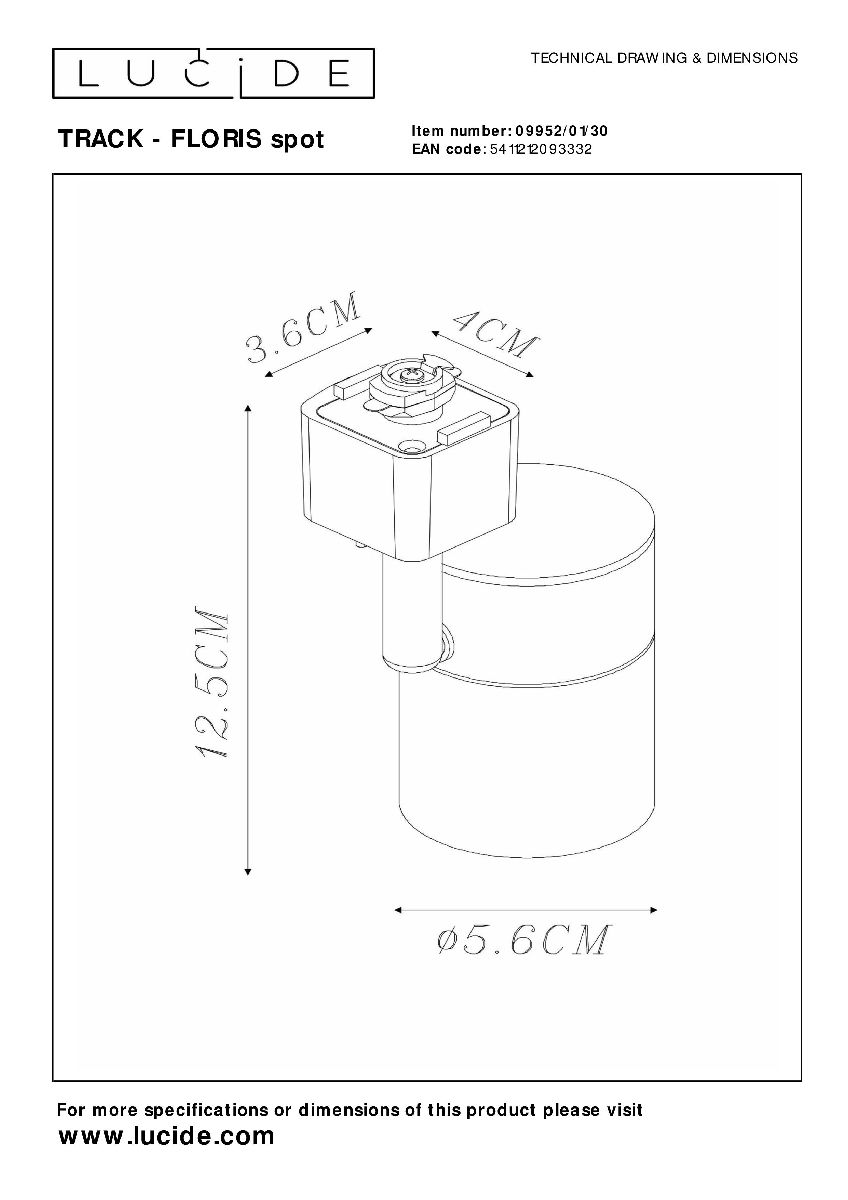 Трековый светильник Lucide Track - floris spot 09952/01/30Характеристики